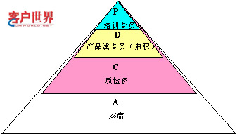 众所周知,金字塔结构是最稳固的结构,在呼叫中心培训体系搭建上,我们就采用金子塔型的管理方式和PDCA的职能分配,以确保培训的全员参与、各司其职、相互促进、长效管理。(附:图1)