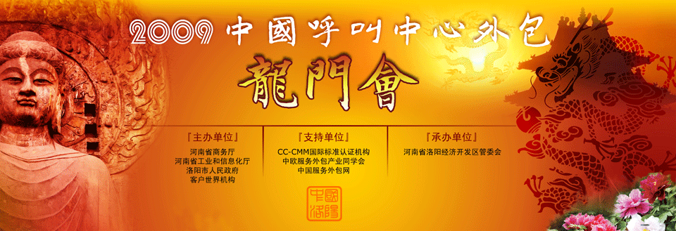 2009中国呼叫中心外包“龙门会”洛阳龙门不仅仅以其洞窟闻名于世,位列“世界文化遗产名录”;它更是一个风景秀丽的地方,这里有东、西两座青山对峙,伊水缓缓北流。远远望去,犹如一座天然门阙,所以古称“伊阙”。自古以来,就是游龙门的第一景观。大诗人白居易曾说过:“洛阳四郊,山水之胜,龙门首焉”。他晚年定居于龙门,每年春季在此遍邀诗友聚会,史称“龙门诗会”。